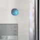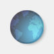 This modern world map design is formed from a grid of tiny square dots, creating a clean digital and pixel-inspired look. Blue gradient tones define the landmasses, while the glowing background transitions from deep warm hues to bright blue, adding depth and contrast. The centered composition and abstract style offer a contemporary interpretation of the global map, ideal for modern interiors, tech-inspired spaces, and fans of digital art aesthetics.