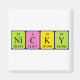 Nicky soletrou como Ni C K Y (Nickel Carbon Potássio Yttrium) em um ímã para o cientista em você.