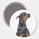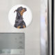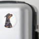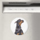 Arredondar ímã você escolhe o tamanho. Resgate Doberman dando um olhar sorrateiro no fotógrafo pedindo um tratamento para ficar bonito. Foto original com direitos autorais de Deb Simon Photoographic.