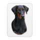 Um Dobermann Pinscher preto com orelhas naturais (cortadas) em um ímã fotográfico flexível. Escolha uma nova cor de fundo clicando em Personalizar>editar>fundo.