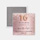 Para um doce elegante 16, 16 anos. Uma cor de plano de fundo rosa-claro. Decorado com rosa dourado falso poeira brilhante. Personalize e adicione um nome/idade e uma data. Salvar a data é escrito com um script de estilo moderno, escrito à mão, com alternâncias. O número 16 é escrito com uma fonte no estilo do balão.