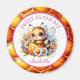 Íman personalizado. Estilo aquarela arte representando uma abelha bonita sentada sobre um pedaço de flores rosa e mel. Faça um chá de fraldas adorável ou um novo presente para bebês.