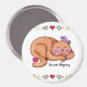 Lindo gato adormecido em moldura de corações... ímã encantador para mostrar no seu frigorífico e presentear quem você quiser.
