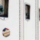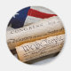 Cópias da Declaração de Independência e da Constituição dos EUA em pergaminhos enrolados com uma vintage bandeira americana