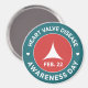 Um ímã redondo de 3 polegadas com o logotipo Dia da Consciência da Doença das Válvulas Cardíacas.
