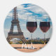 Dois copos de vinho na torre Eiffel e fundo do horizonte de Paris.