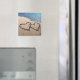 Linda e original foto de dois corações escritos ou desenhados na areia ao longo da água azul do oceano para significar amor e romance em um ímã. Conceito de excelente para os próximos Dias de os namorados e casamentos de praia de verão.