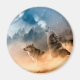 Íman Dois lobos uivando na lua de cheio na floresta