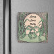 Personalize este ímã com os seus nomes ou qualquer texto que desejar. Esta ilustração vintage tem dois sapos verdes e brancos bonitos discutindo sobre um calço verde-lixado. Uma grande lua branca está atrás deles e eles estão cercados por plantas verdes. O fundo é um design preto e branco. Veja minha loja Art by MAR para combinar produtos com este design.