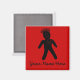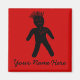 Um imã de boneca voodoo com, "Seu nome aqui." A cor do texto e do plano de fundo pode ser personalizada.