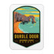 Um design de crachá do parque vintage de Durdle Door, um arco natural de calcário na Costa Jurássica perto de Lulworth, em Dorset, Inglaterra.