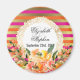 Um imã rico para o seu casamento com um padrão elegante composto por listras horizontais, cor-de-rosa, laranja e douradas. A camada sobre o topo é uma moldura com borda decorativa dourada com um centro branco. Flores cor-de-água rosa e laranja decoram o fundo.