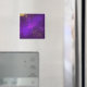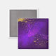 Possui um design de brilho dourado falso em um fundo de galáxia roxa.