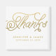 Dourado Favor De Casamento Obrigado Magnets. Tipo de letra simples, mas elegante, com "Obrigados" numa matiz dourada sobre fundo branco de cor sólida. Design versátil com um tema clássico, formal ou tradicional para favores de casamento, obrigado de casamento, mensagem e manutenção de convidado e muito mais. Adicione seus nomes de noiva e noivo e a data do casamento. Mostrada em uma cor branca de fundo que pode ser alterada no menu de edição.