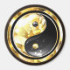 Símbolo de joias, ouro e yin yang preto em um fundo preto. Dourado yin yang.
