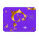 Um na moda de ouro e um ímã de Natal roxo com estrelas douradas, flocos de neve e espirais com uma estrela branca e cintilante sobre um fundo roxo festivo para adicionar um toque elegante às suas decorações de Natal este ano.