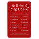 Este engraçado e moderno ímã é um perfeito jogador para a época de Natal de 2020! Em vez da música dos Doze Dias de Natal, é dos Doze Dias de Corona! A maior parte do texto pode ser personalizada, se desejado, se você quiser que o ímã diga algo diferente do que diz atualmente. A cor do plano de fundo também pode ser personalizada para qualquer cor que você quiser! Estão listados na contagem regressiva os fechos das fronteiras, os aberrações do facebook, os sanitizadores, os binges Netflix, os planos cancelados, t.p. rações, 6 pés de distância, 5 máscaras faciais, conspirações, dores de cabeça e quarentinas. Notas de música e um ornamento de bola fazem excelente pequeno sotaque!