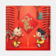 Saudações tradicionais festivas chinesas com grilhões, nós sortudos e nuvens auspiciosas + papel Dragão ouro + duas crianças bonitas para desejar Feliz ano novo. Design no ímã quadrado. Cartão de saudação, cartão postal, adesivo e muito mais. Perfeito para o Dragão Chinês Ano Novo.