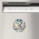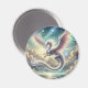 Um dragão branco radiante desliza graciosamente através de um céu celestial, com asas em forma de arco-íris e jorrando poeira estelar.