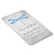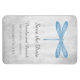 Elegante e simples, salve o ímã flexível de data que apresenta uma libélula azul contra um fundo de nuvens de cinza. Esta design é uma escolha única para anunciar um casamento moderno. Fácil de personalizar com seus detalhes de casamento. Clique em "Personalizar" para encontrar mais opções de personalização.
