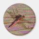 Nature art fotografia de uma libélula, sobre um claro e rústico fundo sonhador de roxo e verde.