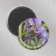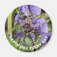 Faça o Dia da Terra todos os dias! Íman decorativo, redondo, para casa ou escritório, com a imagem fotográfica de uma libélula azul-escura colorida que repousa sobre flores roxas. Selecione o tamanho do seu ímã.