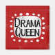 "Rainha do Drama" é um design de texto bonito em vermelho com texto preto, junto com uma forma de sotaque branca e pontos brancos texturizados ao seu redor.