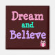 Coruja cor-de-rosa com a frase "Sonho e Acreditação". Bonito presente para os fãs da coruja.