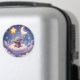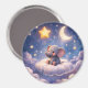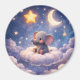 A touch of celestial stunning circular magnet featuring a sweet baby elephant nestled on a fluffy cloud under a glowing crescent moon and golden stars. This high-quality magnet is perfect for decorating your fridge dishwasher or any magnetic surface. The vibrant watercolour textures and deep indigo sky are protected by a durable scratch resistant finish.