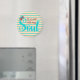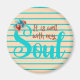 É Bem Com Minha Turquesa de Alma e ímã colorido de pêssego com rosa de taruga e pêssego. O fundo é pêssego com listras de turquesa. Este ímã foi projetado para trazer um pouco da praia para a sua vida! Veja nosso compro para mais nesta coleção.