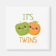 Personagens fofos de laranja e maçã com texto que diz: "É Gêmeos".