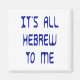 Texto lendo "É TUDO HEBREW PARA MIM" em uma falsa fonte hebraica. Uma paródia do ditado "É tudo grego para mim" usada quando algo é incompreensível.