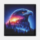 Uma trabalho de arte vibrante que apresenta uma silhueta de águia misturada com uma floresta mística e um céu luminoso iluminado por estrelas, evocando a força, a beleza da natureza e a vastidão do universo.