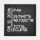 Coordenadas do Eclipse Solar Total de 2026 ímã com um layout limpo e moderno mostrando a data, hora e coordenadas do caminho do eclipse. Faz uma ótima lembrança para observadores de eclipses, fãs de astronomia e qualquer pessoa que tenha vivido o evento de 12 de agosto de 2026.