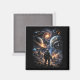 A lone astronaut stands on an alien world beneath swirling galaxies and distant starships, ready to face an epic cosmic conflict.