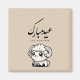 This festive design showcases the Arabic greeting “Eid Mubarak” paired with a friendly ram illustration inspired by Eid al-Adha traditions.