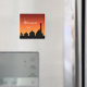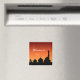 Ilustração Eid Greeting com uma cena do céu noturno: silhueta de uma mesquita num céu vermelho à noite.