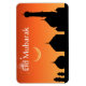 Ilustração Eid Greeting com uma cena do céu noturno: silhueta de uma mesquita num céu vermelho à noite.
