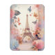 Flexible Magnet with a stylized Eiffel tower image surrounded by pretty butterflies and delicate garden flowers.