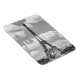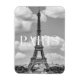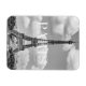 The iconic Eiffel Tower stands tall in Paris, captured in a black and white photograph.