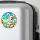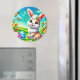 Ostern im Frühlingsgarten sitzt ein Hase und freut über seine Ostereier, die er verschenken möchte!
