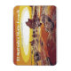 El Matador State Beach apresenta uma imagem de viagem de retrô-arte vintage que mostra uma imagem da magnífica praia na maré baixa e no pôr do sol.
