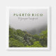 Esta lembrança de viagem apresenta uma foto da vista de montanhas e nevoeiro na Floresta Nacional de El Yunque, no Rio Grande, Porto Rico.