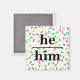 Íman pronoun com confete de aspersão arco-íris em cores pastel. Mostre a sua aliança com um ímã pronunciado. Excelente para pessoas trans, enby, fluidas de gênero ou não-conformes - e normalizar seu uso para todos é um tipo de suporte excelente.