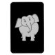 Uma ilustração de um elefante de cinza sobre fundo preto.
