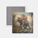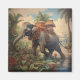pintura em vintage de uma cena botânica com um carregando elefante um howdah caminhando por um rio com um palácio índio nas costas rodeado por plantas e árvores exóticas