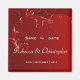 Um na moda real vermelho salve a imã de geladeira da data para os seus futuros convidados de casamento para se lembrarem da data mais importante de todos. Este elegante ímã vermelho pode ser personalizado com seus próprios detalhes, incluindo o nome e a data do próprio casamento. O design apresenta uma bela borda vermelha, amordaçada, rolando com realces prateados para adicionar um toque sofisticado aos seus anúncios de casamento. Este imã de casamento é parte de um conjunto maior de casamento, incluindo convite correspondente, RSVP, adesivos e muito mais, que você pode encontrar aqui: https://www.zazzle.com/collections/elegant_red_wedding-119318179366725501
