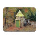 Este ímã flexível apresenta uma casa de elfo encontrada na floresta na Fazenda da árvore de Natal de Winterberry em Killingworth, Connecticut.