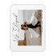 Esvaziamos o ímã de anúncio do elopemento de fotos com os novos nomes Sr. e Sra. Design minimalista e simples para que sua família e amigos saibam que você é marido e mulher.