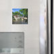 Fotoímã de Souvenir com o castelo e a aldeia histórica de Ségur-le-Château, com as suas casas semimersas ao lado do rio Auvézère, em Limousin, França.